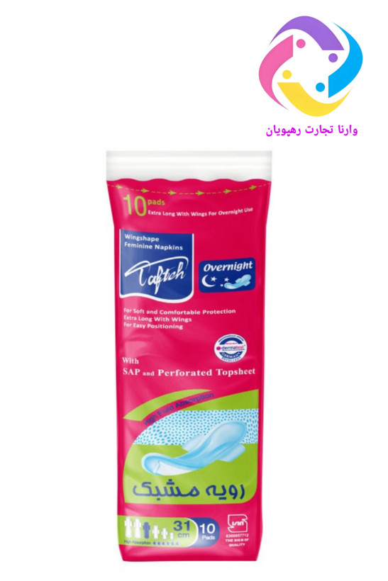 نوار بهداشتی بالدار تافته ویژه شب دارای رویه مشبک، با قدرت جذب فوق العاده مناسب استفاده طولانی مدت به ویژه در شب می باشد. این نواربهداشتی در بسته بندی 10 عددی عرضه می شود. نوار بهداشتی تافته با قدرت جذب فوق العاده و دنباله بلند جهت استفاده در شب طراحی شده و با جذب ترشحات توسط پودر جاذب و رویه مشبک استفاده طولانی و راحت را میسر می سازد.
