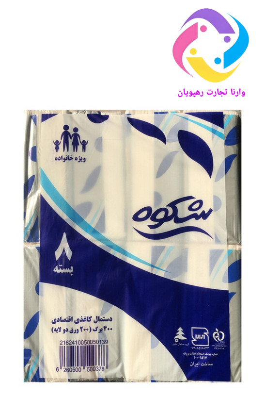 دستمال کاغذی 200 برگ شکوه بسته 8 عددی