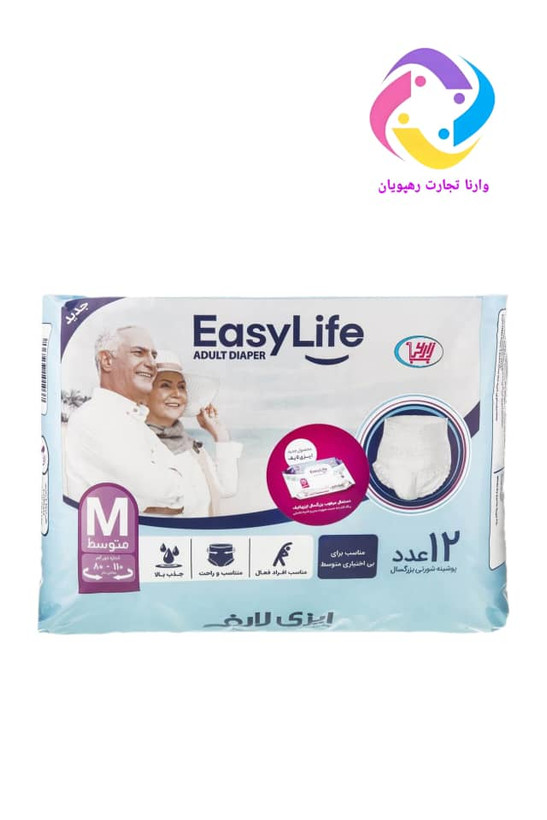 پوشینه شورتی بزرگسال ایزی لایف سایز متوسط بسته 12 عددی