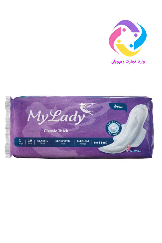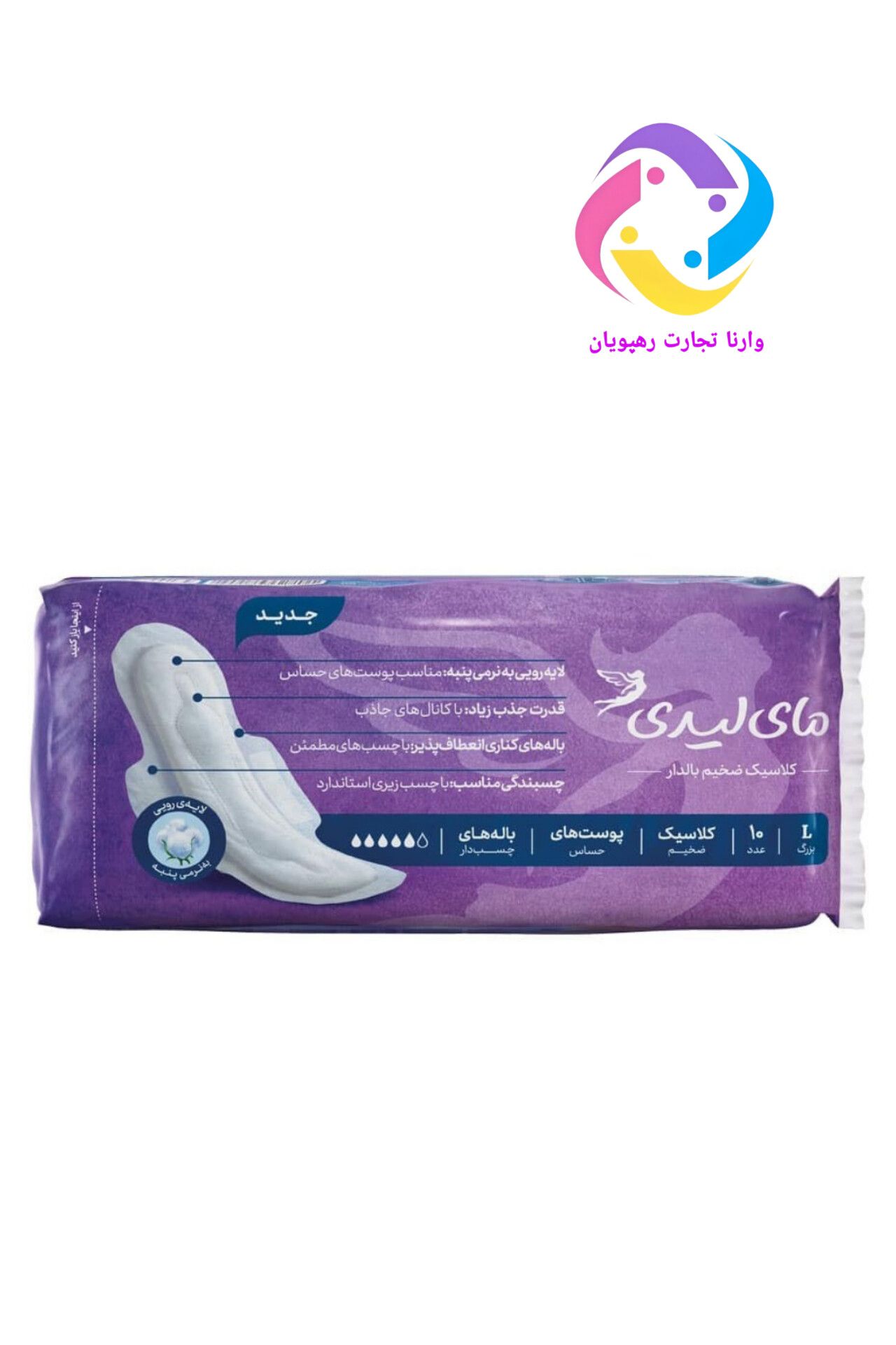 نوار بهداشتی کلاسیک ضخیم سایز بزرگ (پوست های حساس ) بسته 10 عددی مای لیدی
